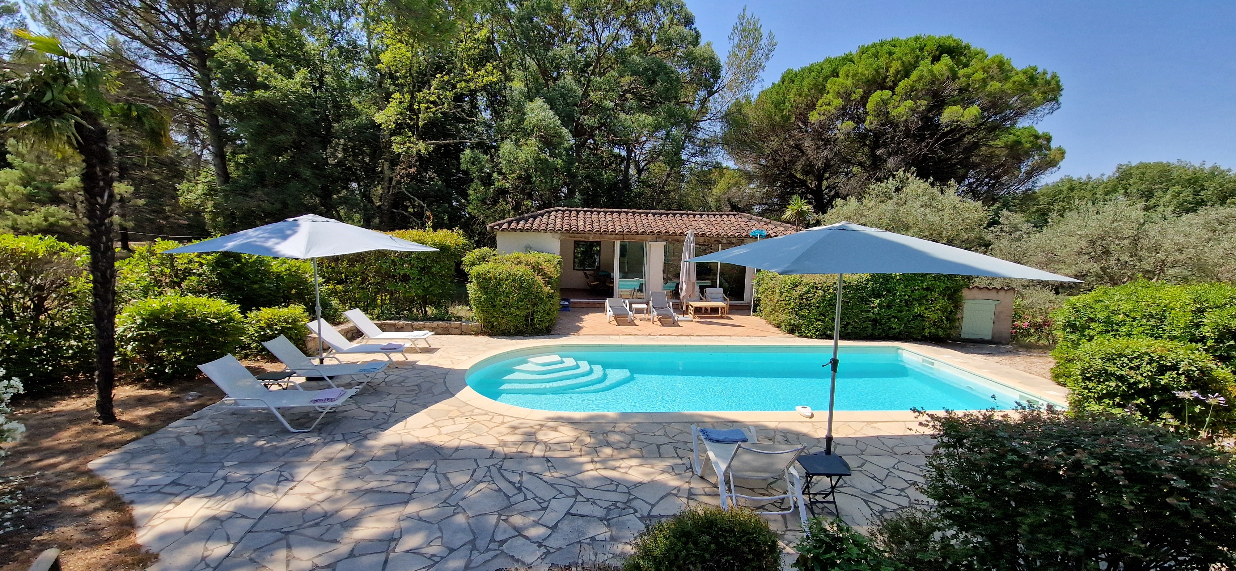 Het zwembad is 10 x 6 meter en is voorzien van zwembadverwarming. Aan het zwembad zit een poolhouse, voorzien van keuken en zithoek. Onder het poolhouse is een apart gastenverblijf met 2 slaapkamers en een badkamer.