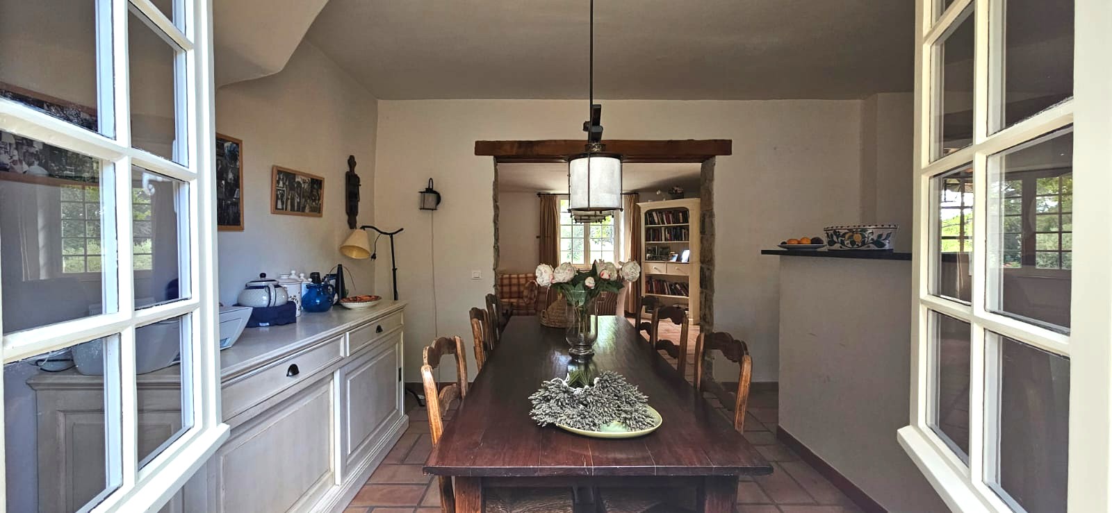 Aan het zwembad zit een riant poolhouse met keuken met eet/zithoek, glazen schuifdeuren.